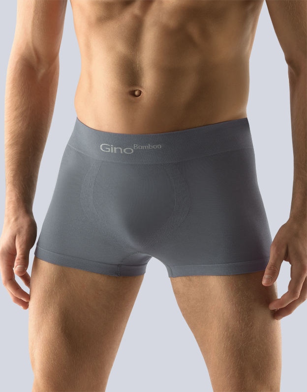 Boxerky s kratší nohavičkou, pánské bezešvé prádlo. Pasový kraj je zesílený a zapravený bezešvým způsobem. Nohavičky jsou zapravené bezešvým způsobem. V rozkroku je všitý klínek. Na předním díle jsou boxerky tvarovány vypletenými zónami. Boxerky jsou jednobarevné. V záložce je vypletené logo v šedé barvě. Materiál je vyroben z bambusového vlákna, které je doplněno elastanem. Úplet je velmi jemný a příjemný na nošení. Do každodenního prádla přináší luxusní hedvábný vzhled. Kolekce Bamboo Pure Line se vyznačuje tím, že použitý materiál má vyšší gramáž a vzhledem ke svému složení se vyznačuje výbornou tvarovou stálostí a odolností.