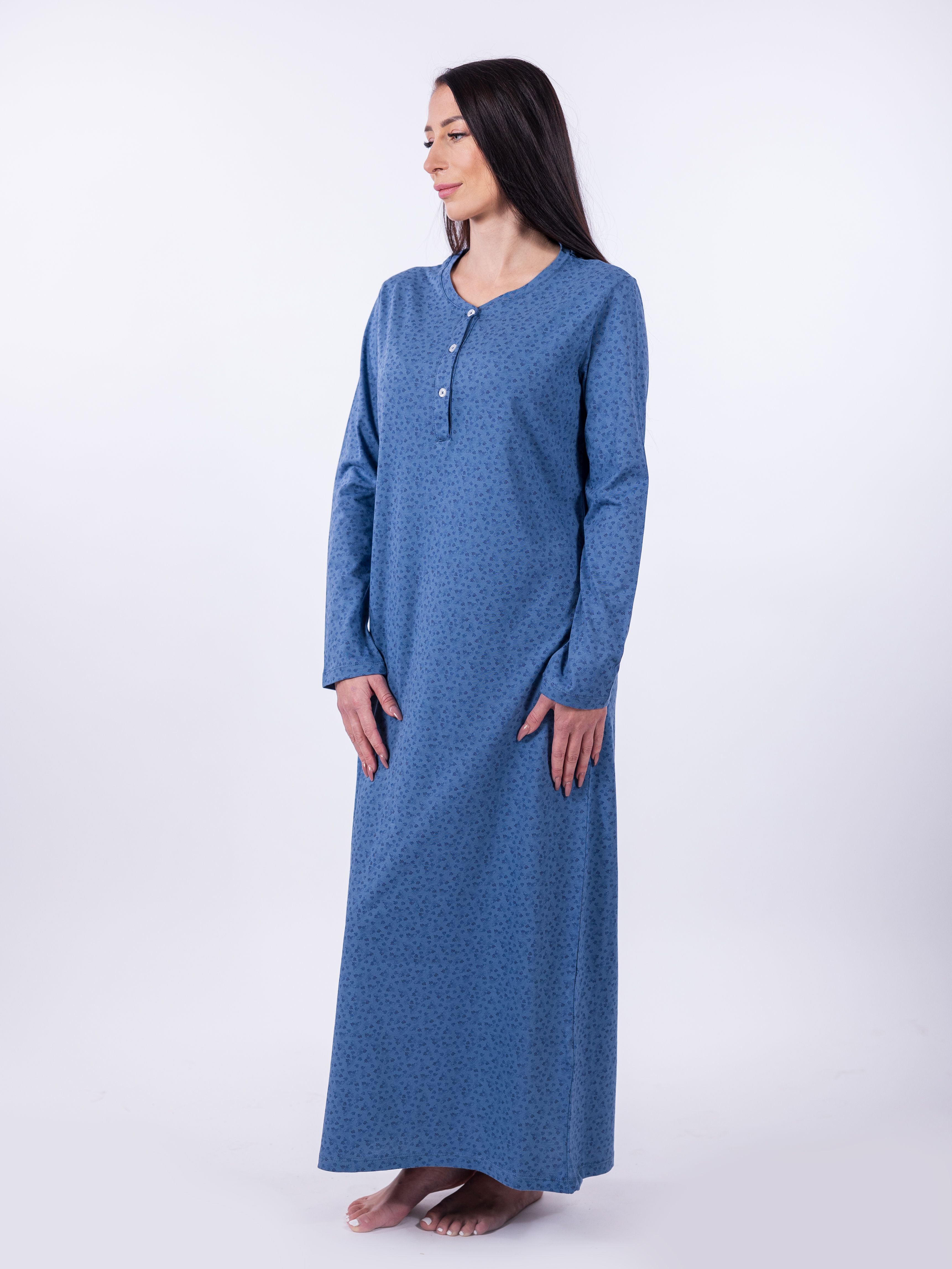 Vyzkoušejte pohodlnou noční košili FANNY, která je ideální pro chladnější večery. Tato dlouhá košile v modré barvě je vyrobena ze 100% bavlny, která je jemná, prodyšná a příjemná na dotek. Praktické zapínání na knoflíčky v horní části dodává šarm a usnadňuje oblékání. Košile FANNY je skvělou volbou pro ty, kteří hledají komfort a jednoduchou eleganci.