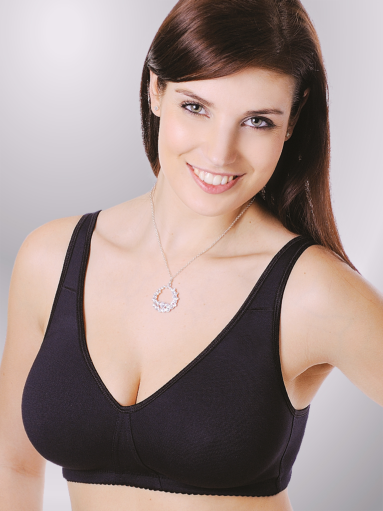 Příjemná podprsenka bez kostic s hladkými lisovanými košíčky, které jsou přirozeně zakulacené. Její velkou předností je také příjemný a z velké části bavlněný materiál. Podprsenka je vhodná nejen pro každodenní nošení, ale díky padnoucímu střihu prsa podrží i při sportovních aktivitách. Ramínka jsou pevná vyztužená, aby se nezařezávala. Zapínání je v zadní části na dvojháček, u větších velikostí trojháček se třemi možnostmi posunutí.
