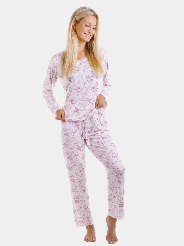 Nová kolekce 2020/2021 nabízí pyžamo v aktraktivním designu z extra jmené a kvalitní viskozy. Pohodlné doulhé kalhoty spolu s trikem s dlouhým rukávem jsou ideální volbou jak pro spánek, tak pro domácí nošení. Vybírat můžete od velikost S až po XXXL.