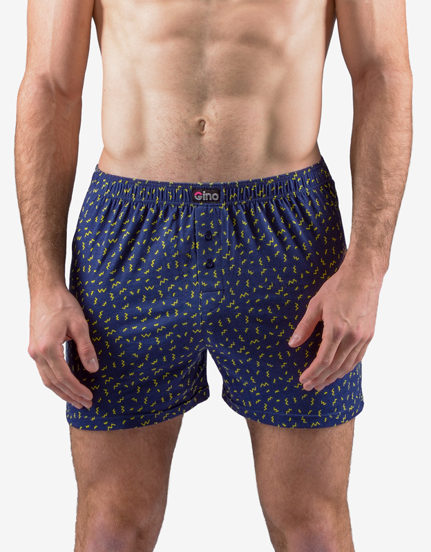 Volné trenky, pánské šité prádlo. V pasovém kraji je zašitá širší pruženka. Nohavičky jsou začištěné podehnutím. Na předním díle je vypracovaný rozparek na 2 knoflíky. Zadní díl je členěný středovým švem. Trenky jsou potištěné. Materiál je vyroben ze 100% bavlny. Úplet je vhodný pro všechny, kteří hledají přírodní materiály. Prádlo z tohoto materiálu je vhodné pro každodenní nošení.